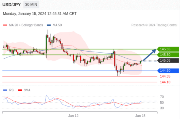 在 144.60 之上,看涨,目标价位为 145.30 ,然后为 145.55 。