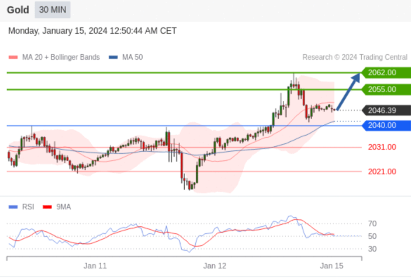 在 2040.00 之上,看涨,目标价位为 2055.00 ,然后为 2062.00 。