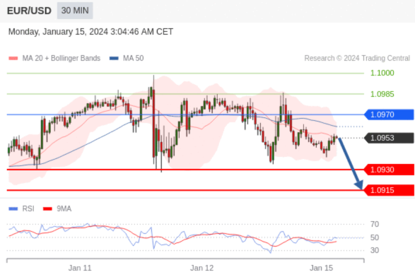在 1.0970 之下,看跌,目标价位为 1.0930 ,然后为 1.0915 。