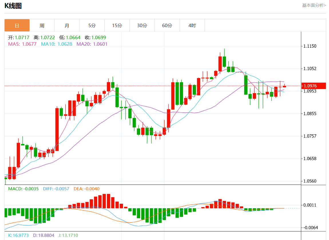 周五欧市盘中,欧元/美元最新报1.0975,日图涨0.03%.