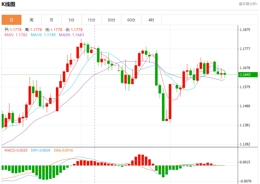 汇价高见1.1662,低见1.1624。上一交易日,汇价收于1.1650。