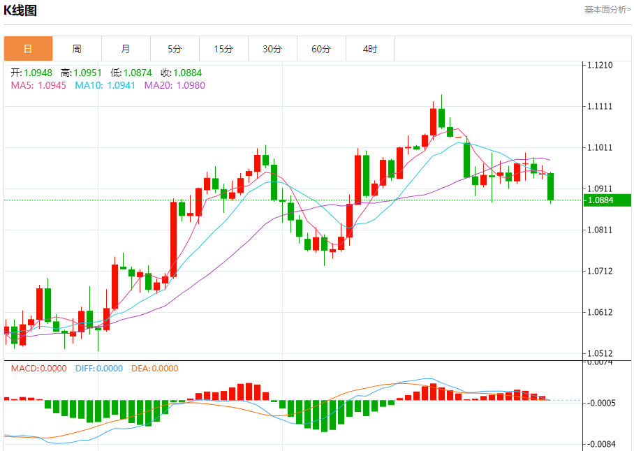 汇价高见1.0951,低见1.0874。上一交易日,汇价收于1.0948。