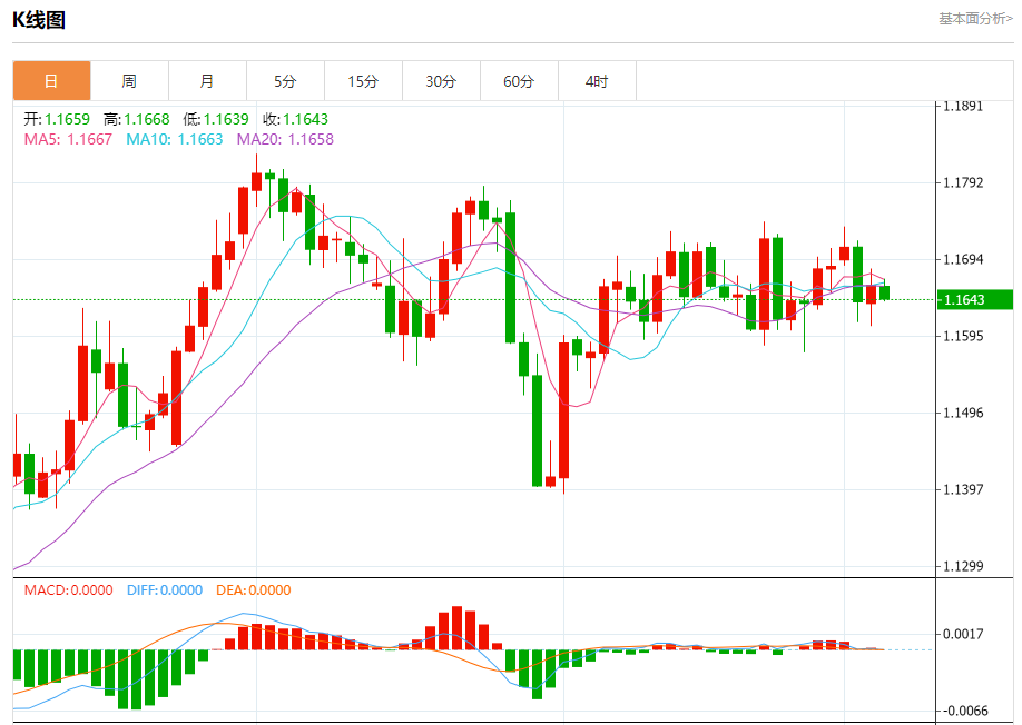 汇价高见1.1668,低见1.1639。上一交易日,汇价收于1.1661。