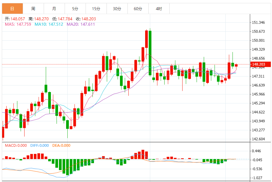 周四(9月4日),美元/日元上涨148.232,暂报148.204,涨幅0.10%。