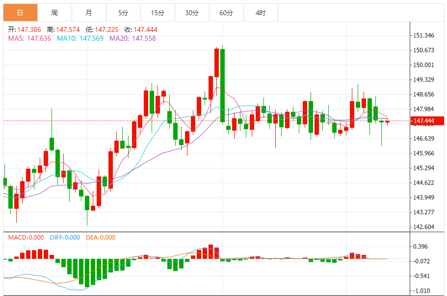周三(9月10日),美元/日元下跌147.441,暂报147.436,涨幅0.02%。