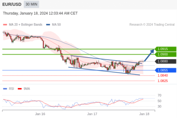 在 1.0855 之上,看涨,目标价位为 1.0900 ,然后为 1.0915 。