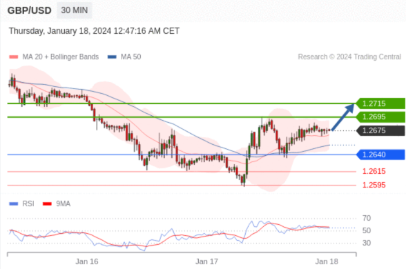 在 1.2640 之上,看涨,目标价位为 1.2695 ,然后为 1.2715 。