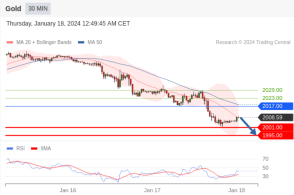 在 2017.00 之下,看跌,目标价位为 2001.00 ,然后为 1995.00 。