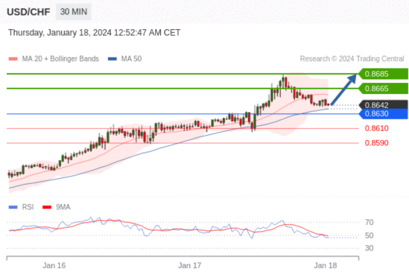 在 0.8630 之上,看涨,目标价位为 0.8665 ,然后为 0.8685 。