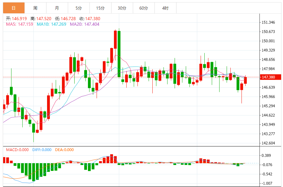 周四(9月18日),美元/日元上涨147.382,暂报147.374,涨幅0.29%。