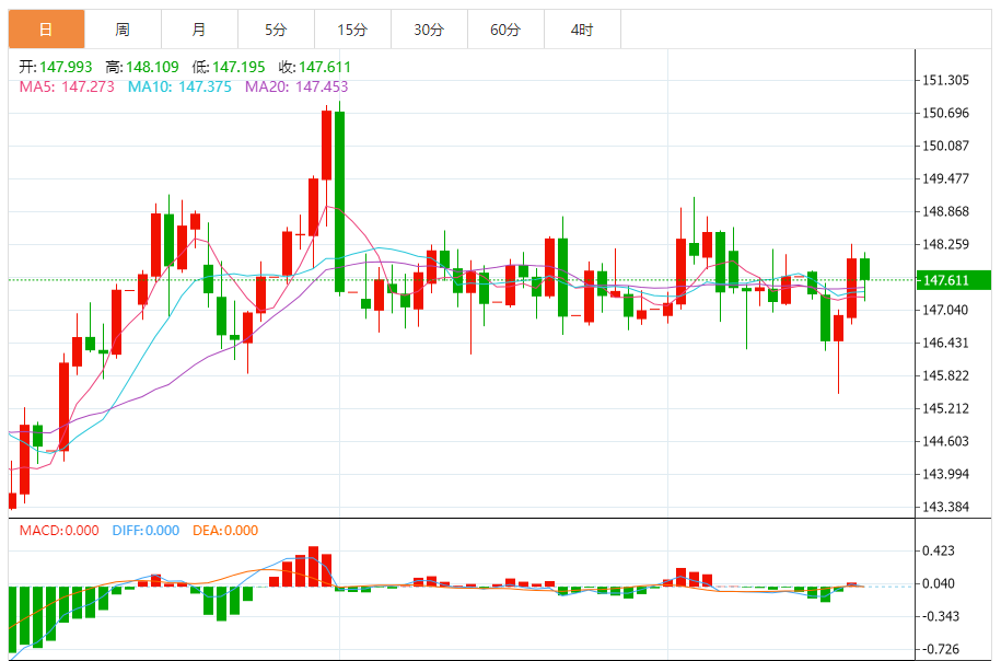 周五(9月19日),美元/日元下跌147.621,暂报147.613,跌幅0.26%。