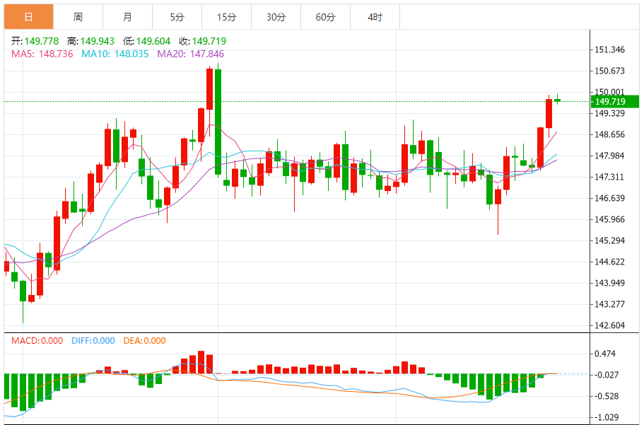 周五(9月26日),美元/日元下跌149.747,暂报149.718,跌幅0.04%。
