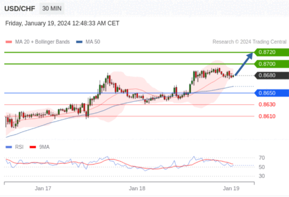 在 0.8650 之上,看涨,目标价位为 0.8700 ,然后为 0.8720 。