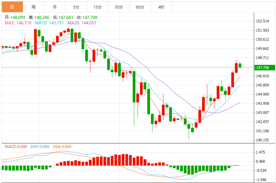 周四(1月18日),美元/日元下跌,暂报147.74,跌幅0.27%。