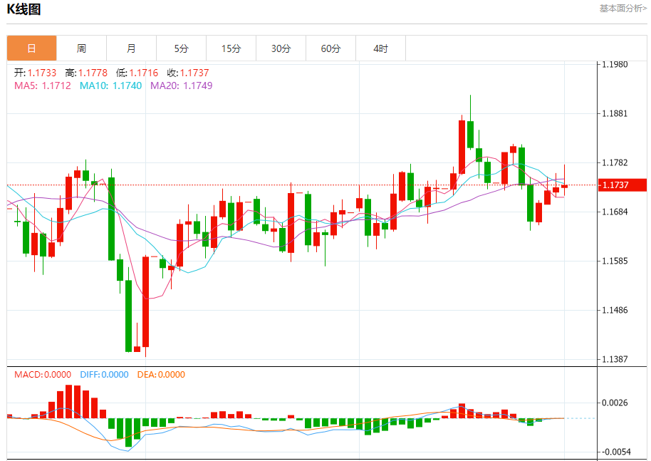 汇价高见1.1778,低见1.1715。上一交易日,汇价收于1.1732。