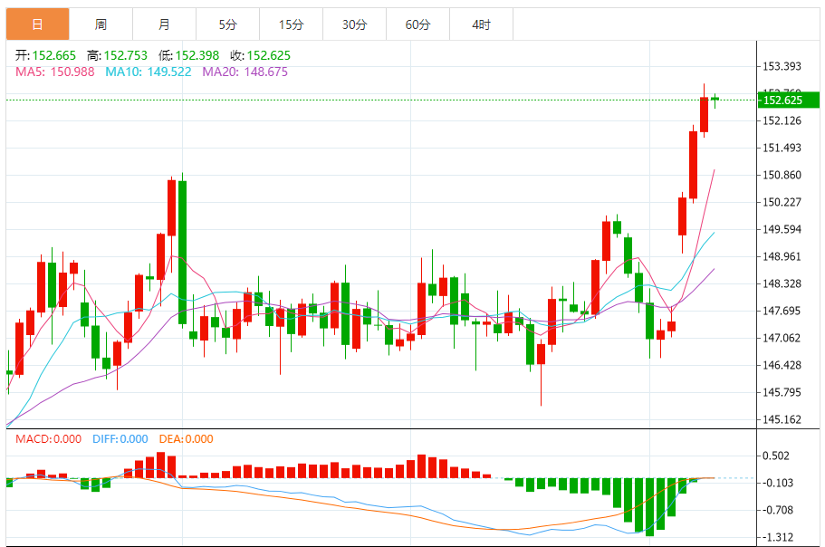 周四(10月9日),美元/日元下跌152.643,暂报152.635,跌幅0.02%。