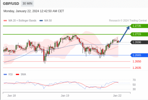在 1.2665 之上,看涨,目标价位为 1.2715 ,然后为 1.2735 。