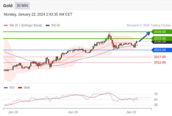 在 2023.00 之上,看涨,目标价位为 2033.00 ,然后为 2039.00 。