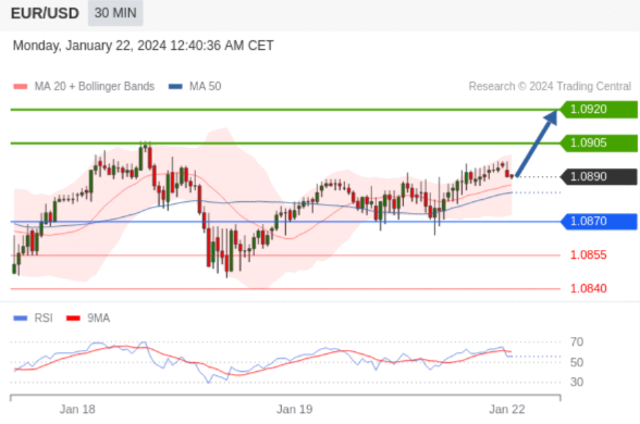 在 1.0870 之上,看涨,目标价位为 1.0905 ,然后为 1.0920 。