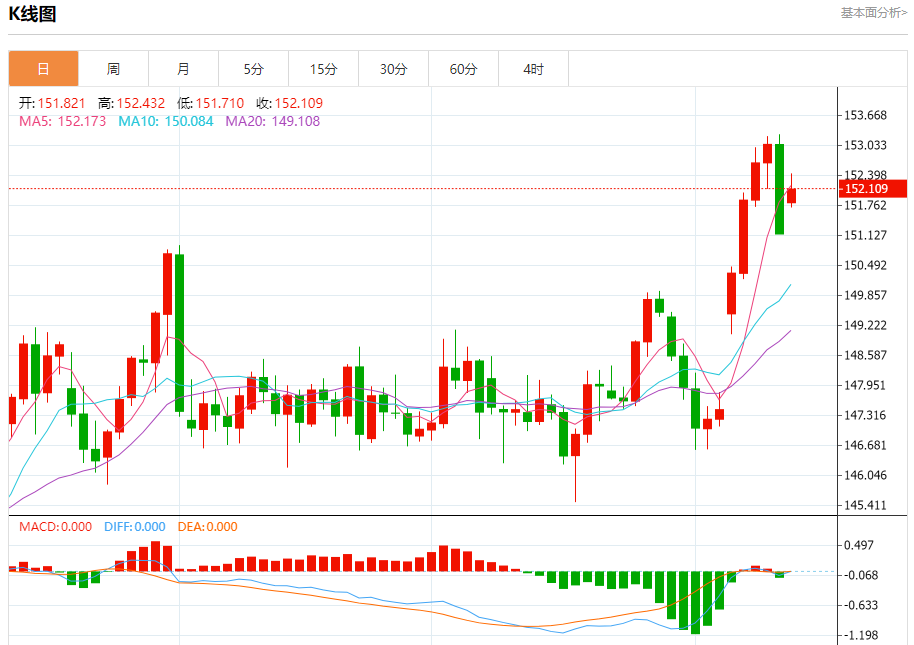 汇价高见152.432,低见151.710。上一交易日,汇价收于151.292。