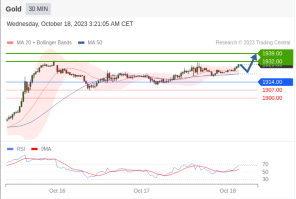 在 1914.00 之上,看涨,目标价位为 1932.00 ,然后为 1939.00 。