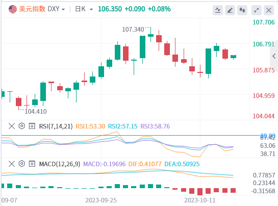 受美联储官员鸽派言论打压,美元指数周一走软,最低触及106.18;截至周一收市,追踪美元兑六种主要货币的ICE美元指数下跌0.42%,至106.21。