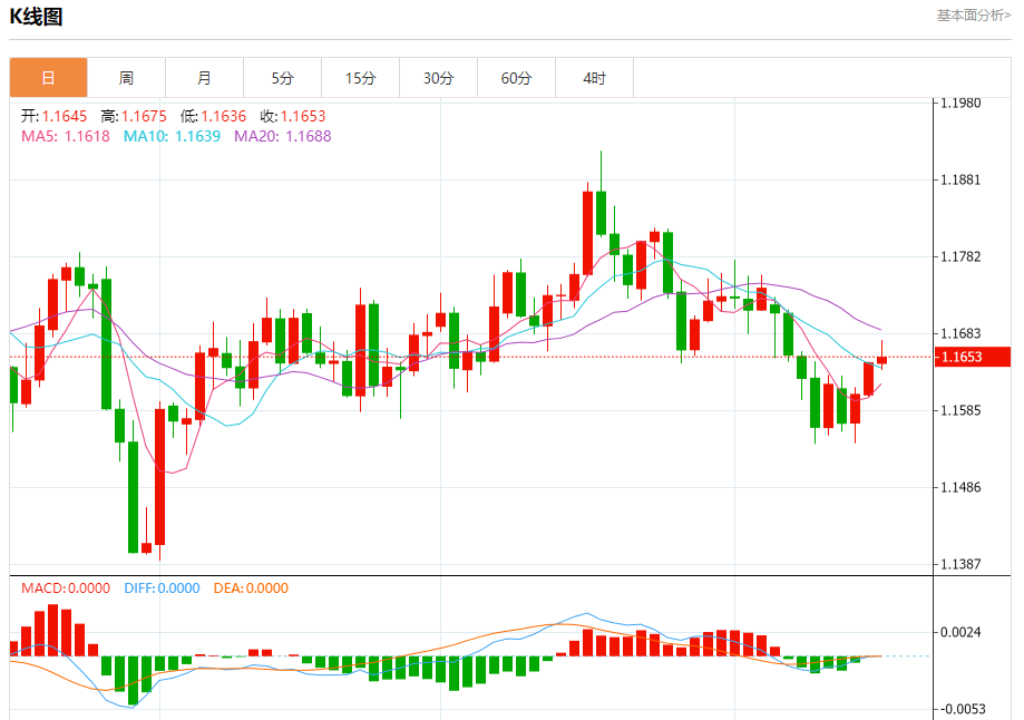 汇价高见1.1675,低见1.1636。上一交易日,汇价收于1.1646。
