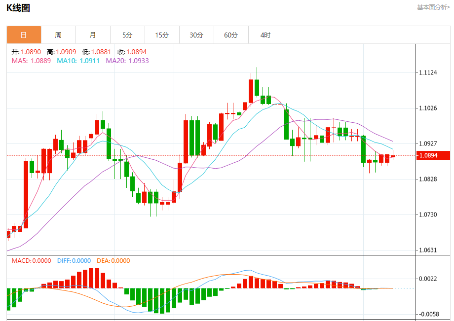 汇价高见1.0909,低见1.0881。上一交易日,汇价收于1.0897。