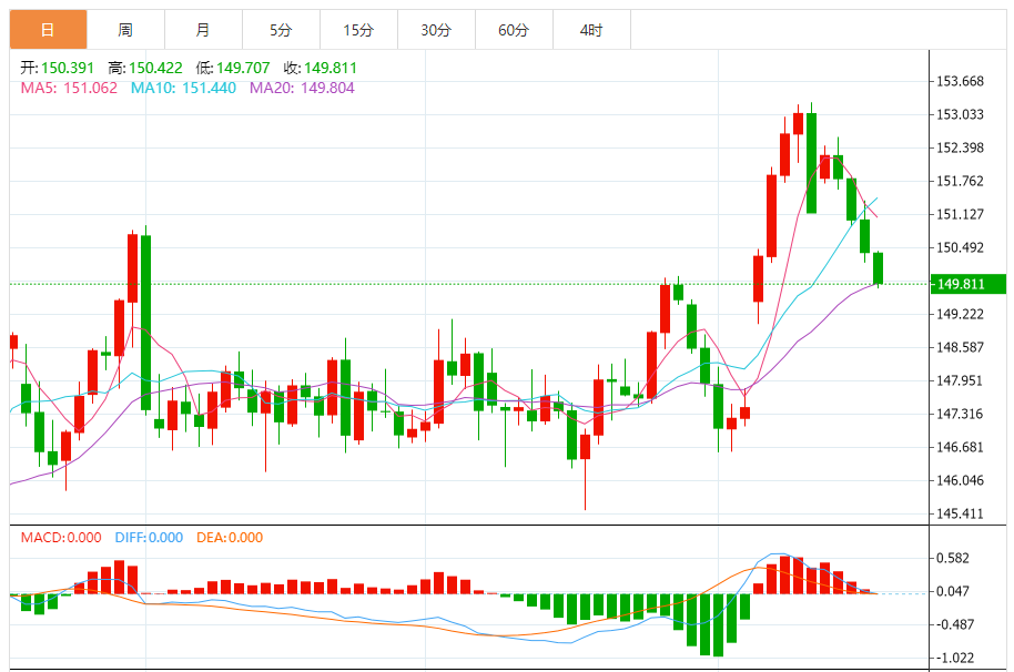 周五(10月17日),美元/日元下跌149.854,暂报149.825,跌幅0.38%。