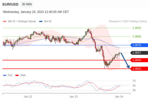 在 1.0875 之下,看跌,目标价位为 1.0840 ,然后为 1.0820 。