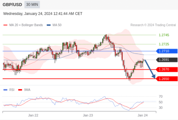 在 1.2710 之下,看跌,目标价位为 1.2670 ,然后为 1.2650 。