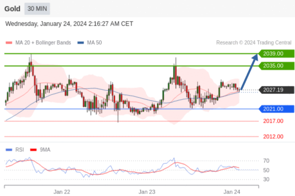 在 2021.00 之上,看涨,目标价位为 2035.00 ,然后为 2039.00 。