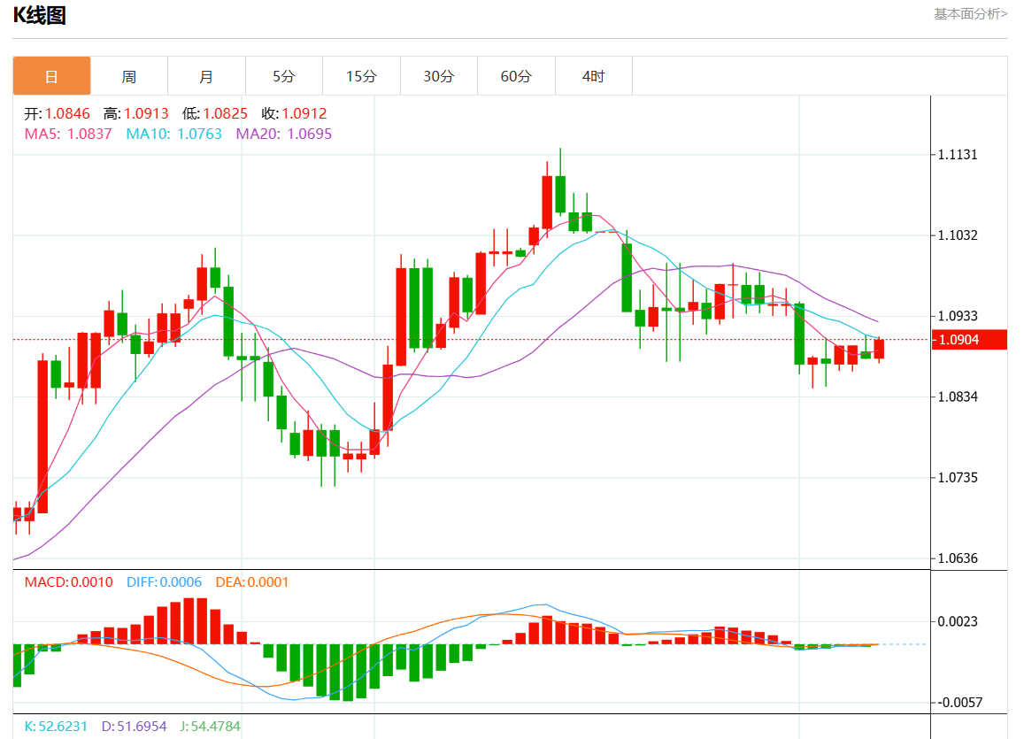 周二欧市盘中,欧元/美元最新报1.0905,日图涨0.21%.