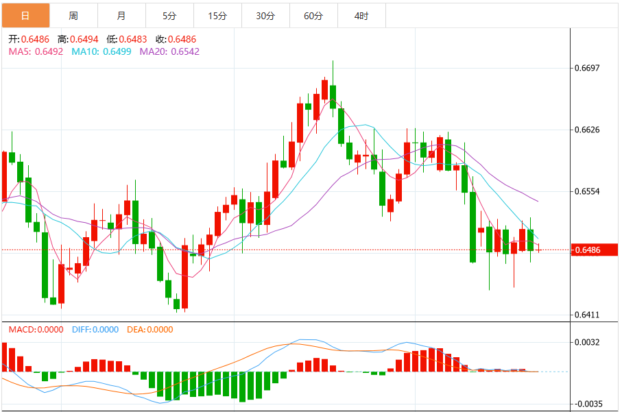 技术分析:澳元在0.6500上方徘徊,接近九日指数移动平均线