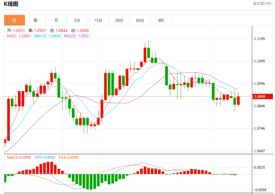 汇价高见1.0907,低见1.0844。上一交易日,汇价收于1.0853。