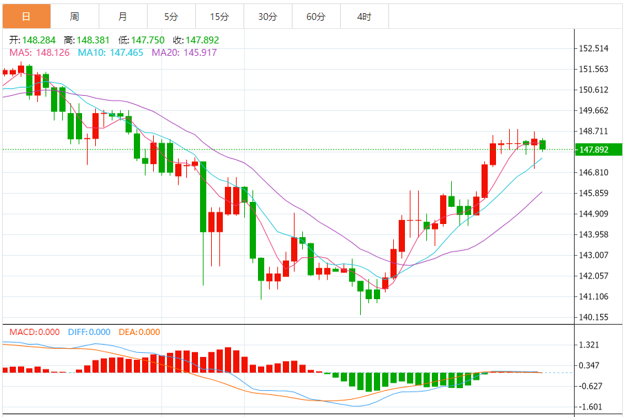 周三(1月24日),美元/日元下跌,暂报147.897,跌幅0.32%。