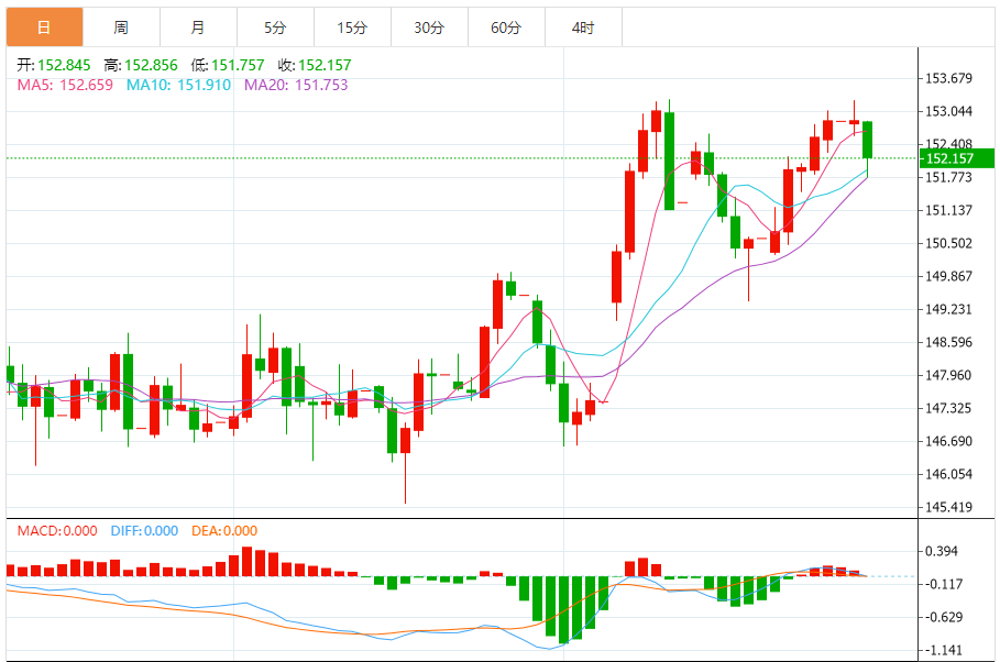 周二(10月28日),美元/日元下跌152.171,暂报152.159,跌幅0.46%。