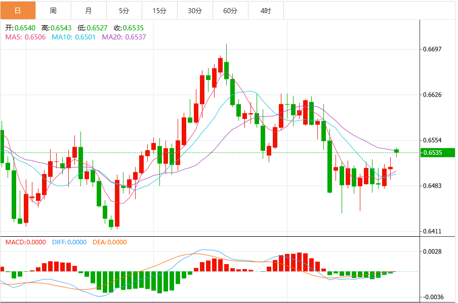 技术分析:澳元在0.6550上方保持涨幅,接近50日EMA