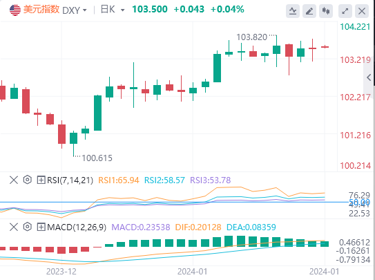 美元指数在上周试图下跌之后,似乎仍维持在103上方。该指数可能在未来几个交易日测试104,然后再跌向103。