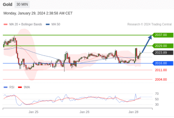 在 2016.00 之上,看涨,目标价位为 2029.00 ,然后为 2037.00 。