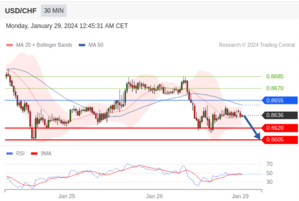 在 0.8655 之下,看跌,目标价位为 0.8620 ,然后为 0.8605 。