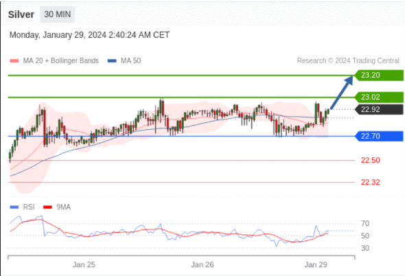 【XM交易平台】2024年1月29日亚盘交易建议:黄金、白银、欧元、英镑、日元、瑞郎交易点位技术分析及预测