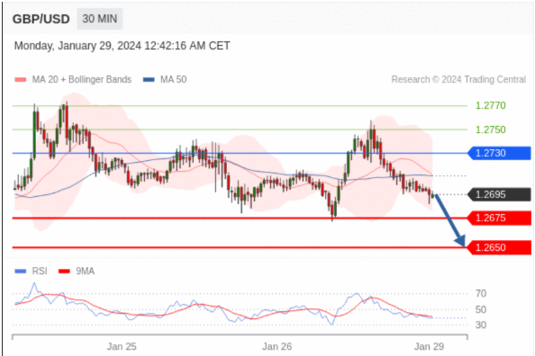 在 1.2730 之下,看跌,目标价位为 1.2675 ,然后为 1.2650 。