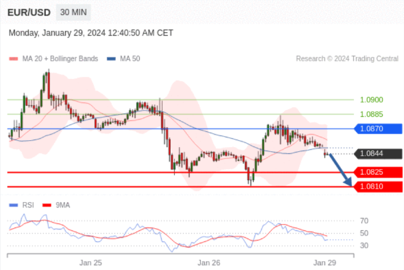 在 1.0870 之下,看跌,目标价位为 1.0825 ,然后为 1.0810 。