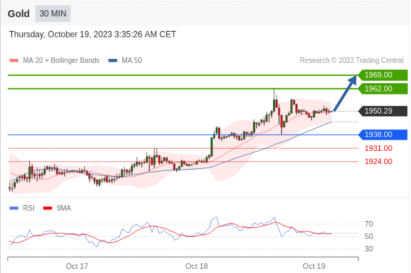 在 1938.00 之上,看涨,目标价位为 1962.00 ,然后为 1969.00 。