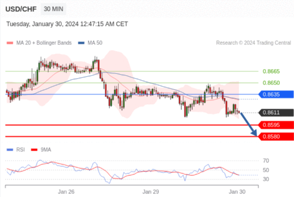 在 0.8635 之下,看跌,目标价位为 0.8595 ,然后为 0.8580 。