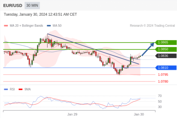 在 1.0810 之上,看涨,目标价位为 1.0850 ,然后为 1.0865 。