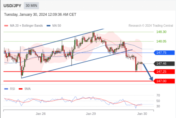 在 147.75 之下,看跌,目标价位为 147.25 ,然后为 147.00 。