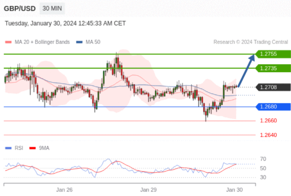 在 1.2680 之上,看涨,目标价位为 1.2735 ,然后为 1.2755 。