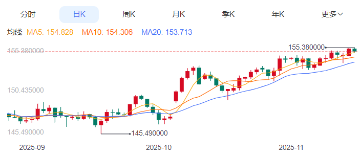 阻力位:155.11 155.15 155.20